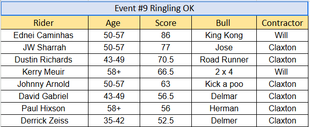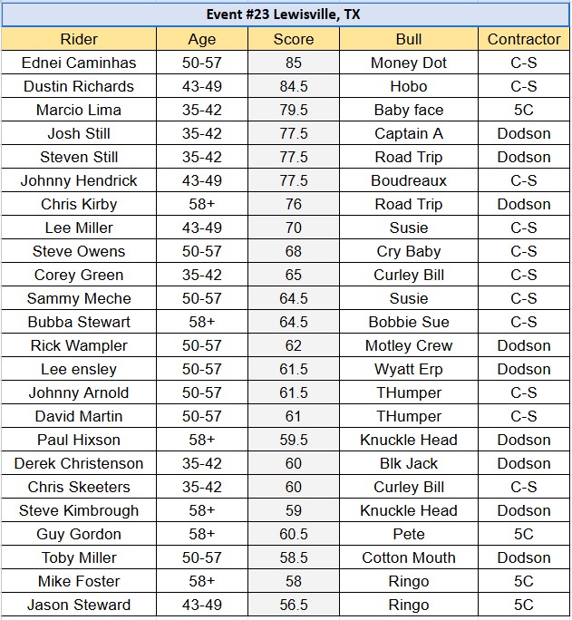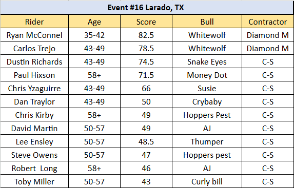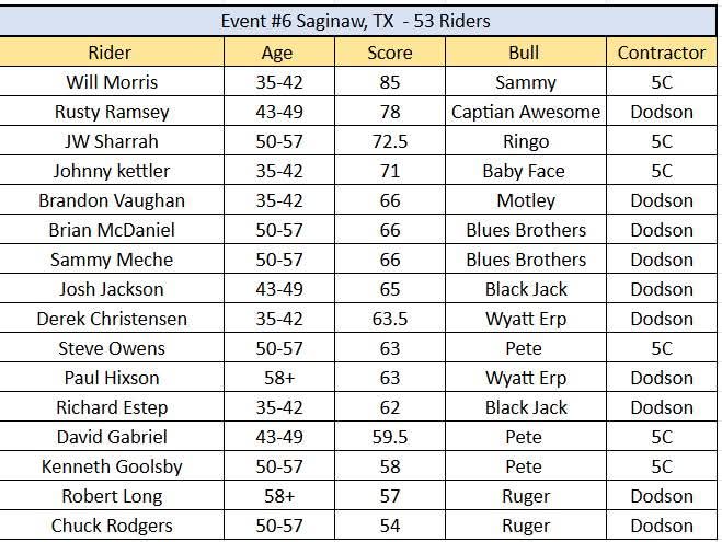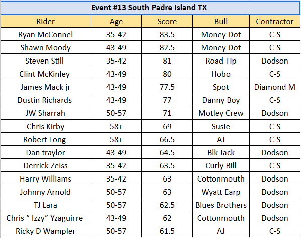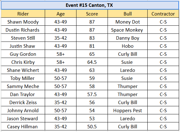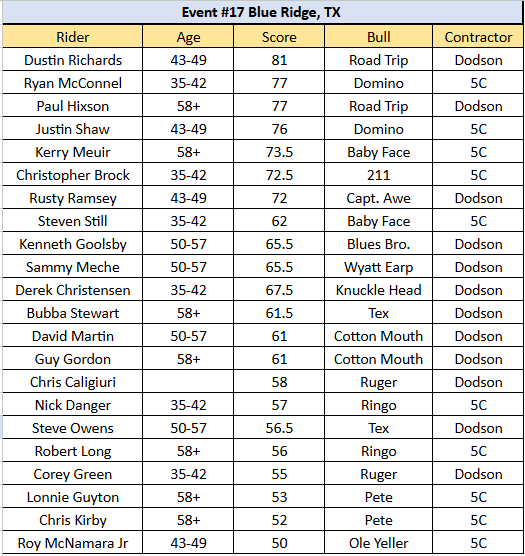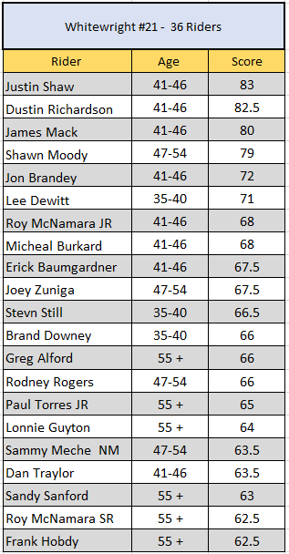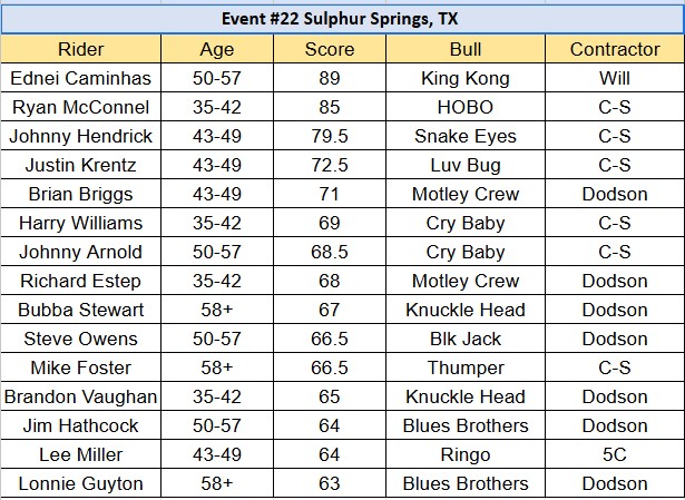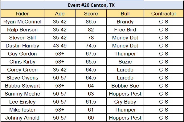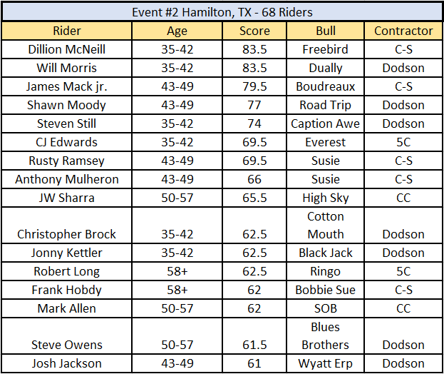 | Event #22 Hamilton, TX 5pm – Riders 39 | ||||