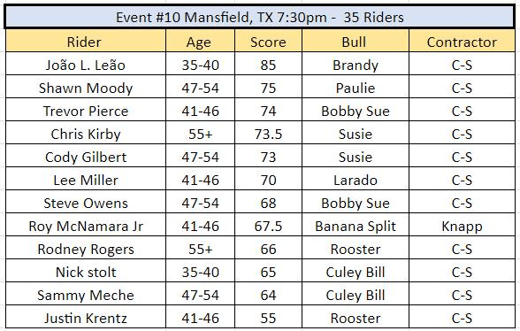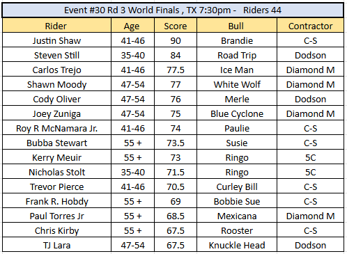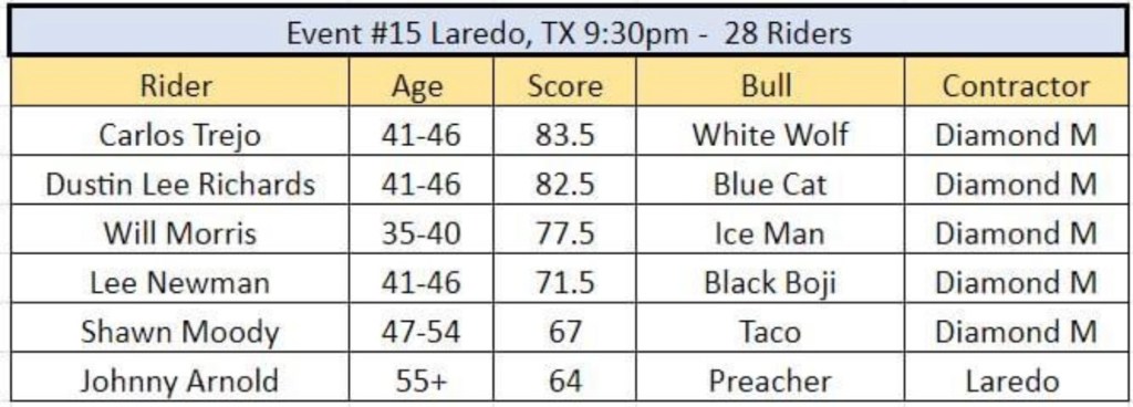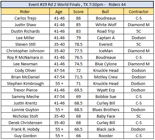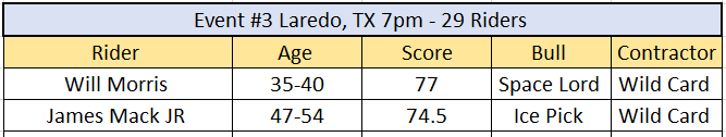 | Event #24 Columbus, TX 7:30pm – Riders 32 | ||||