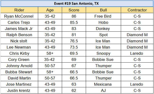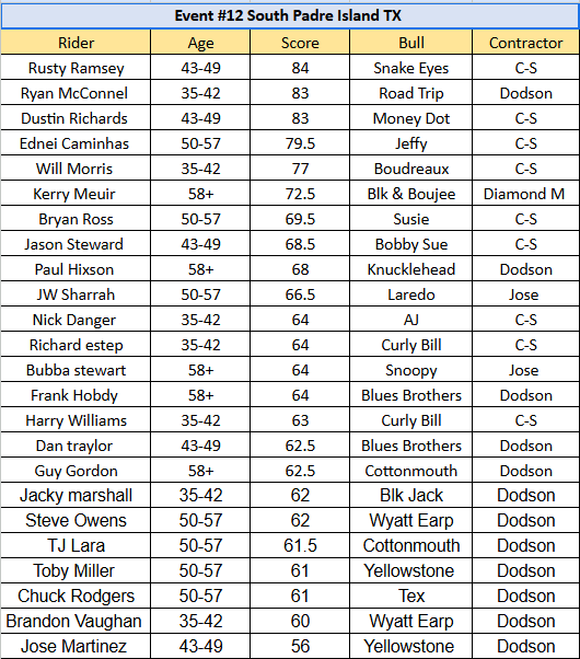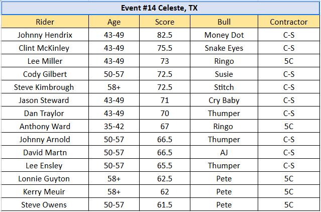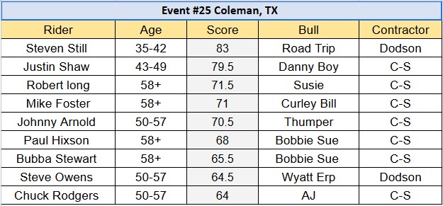| Event #25 Columbus, TX 2pm – Riders 28 | ||||
