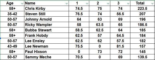 | Chris Kirby | 55+ | 71 | Knuckle Head | Dodson |