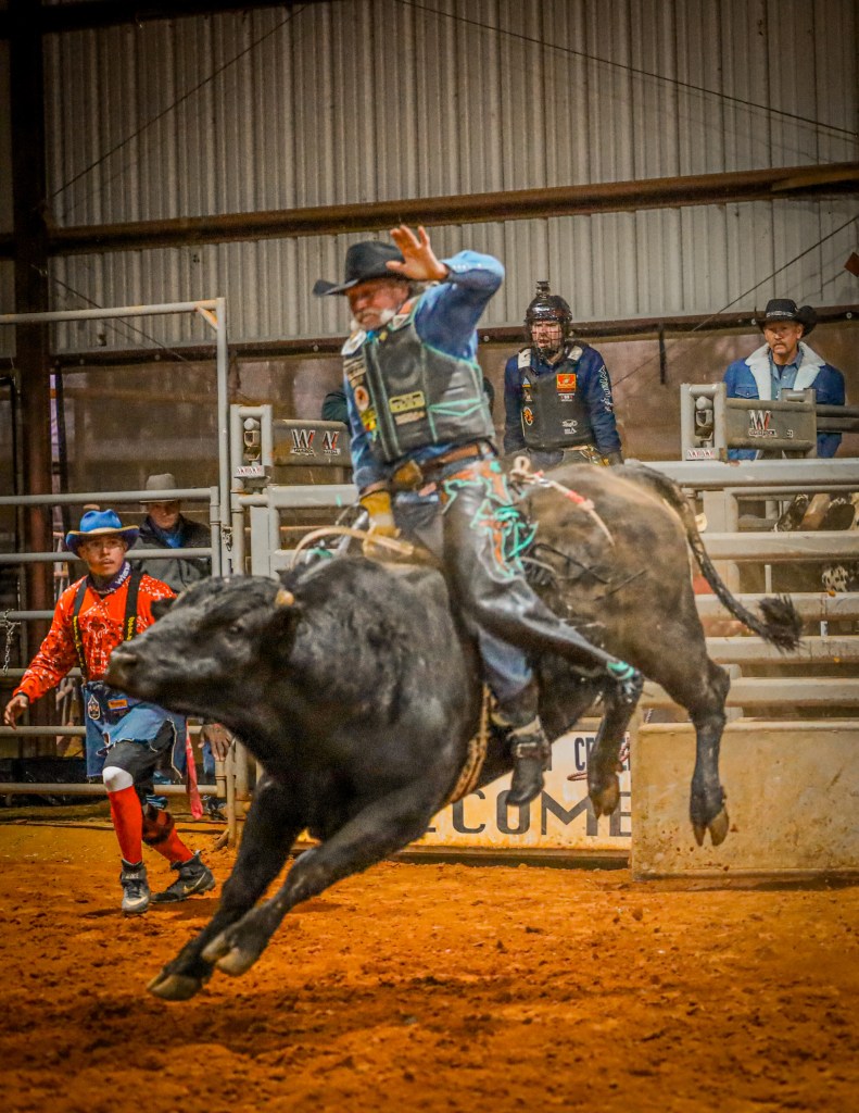 2/08/2025 – Vernon, TX Oldest rider to cover bull: Charlie Stephens age 71 with 65 points. Shown below (2nd pic)